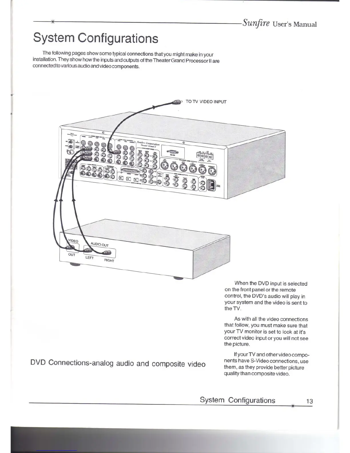 Sunfire THEATER GRAND PROCESSOR II - System Configurations and Connections; DVD Connections - Analog and Composite