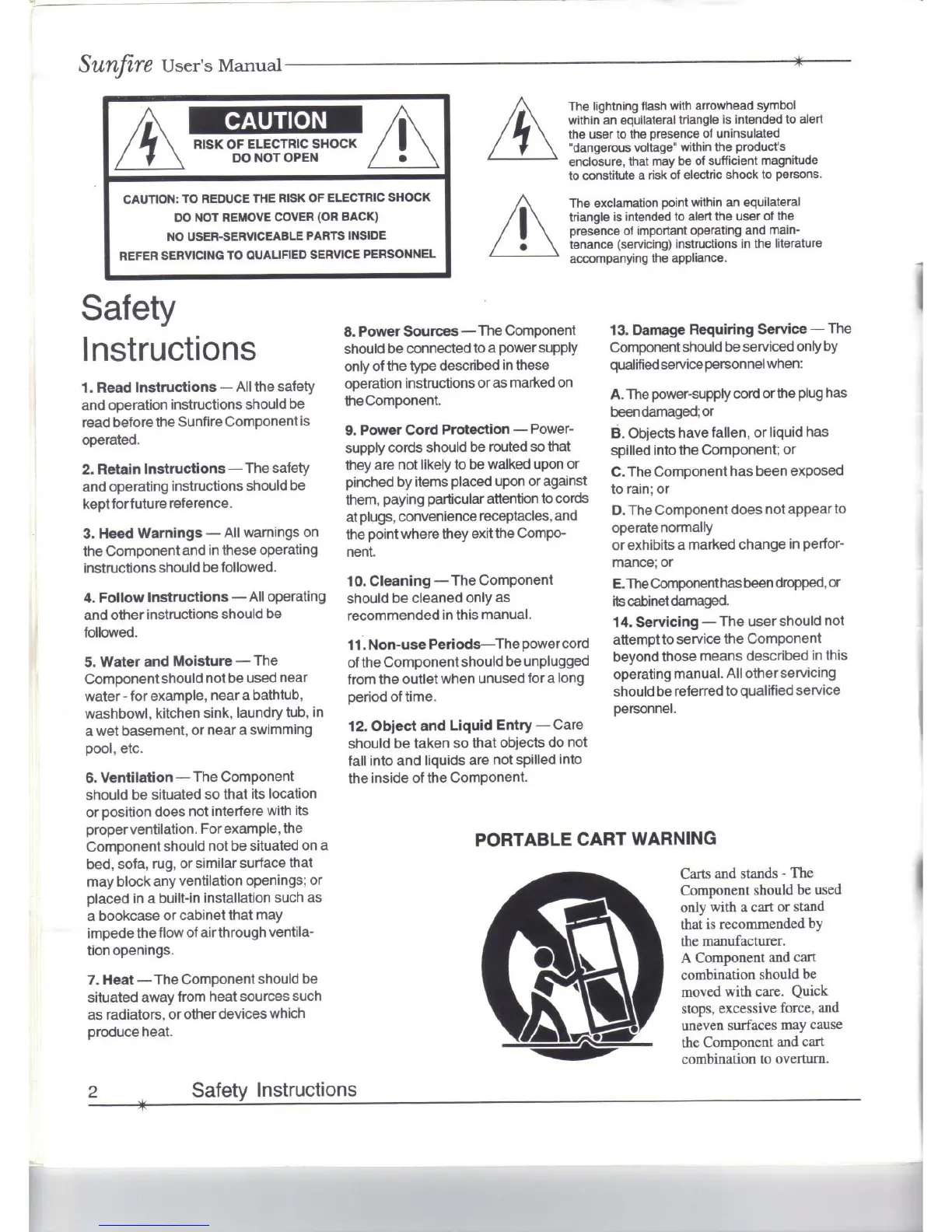 Sunfire THEATER GRAND PROCESSOR II - Safety Instructions; General Safety Precautions