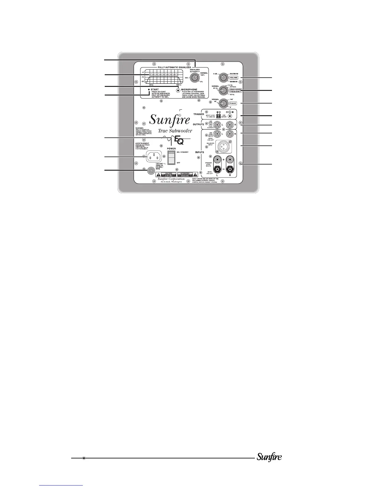 Sunfire True Subwoofer Solitaire 10 - Control Panel Features