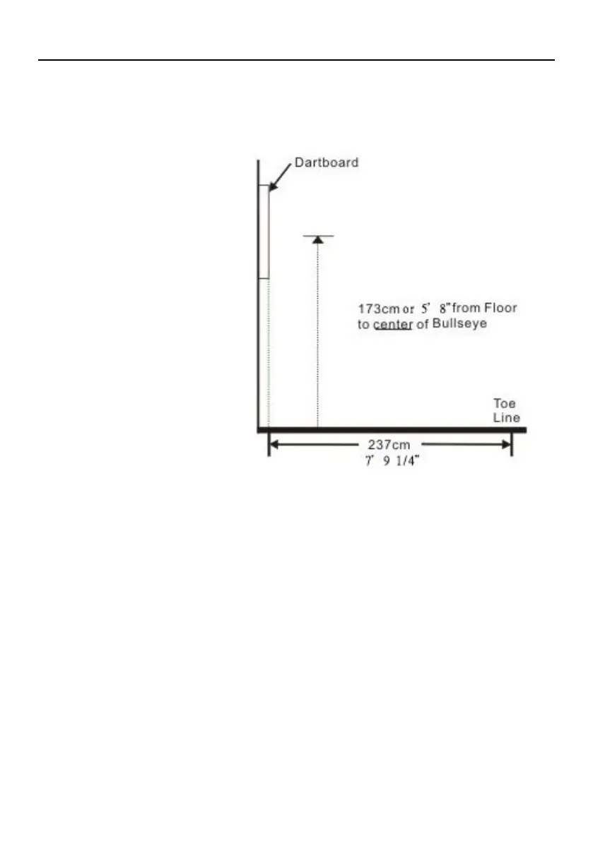 wenn das Zentrum des Bullseye 173 cm über dem Fußboden befindet. Als optimale Wurflinie gilt die