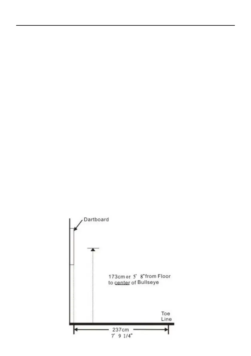 board. The “toe-line” should be 7’9 1/4” (2.37 M) from the face of the dartboard. Since this dartboard is