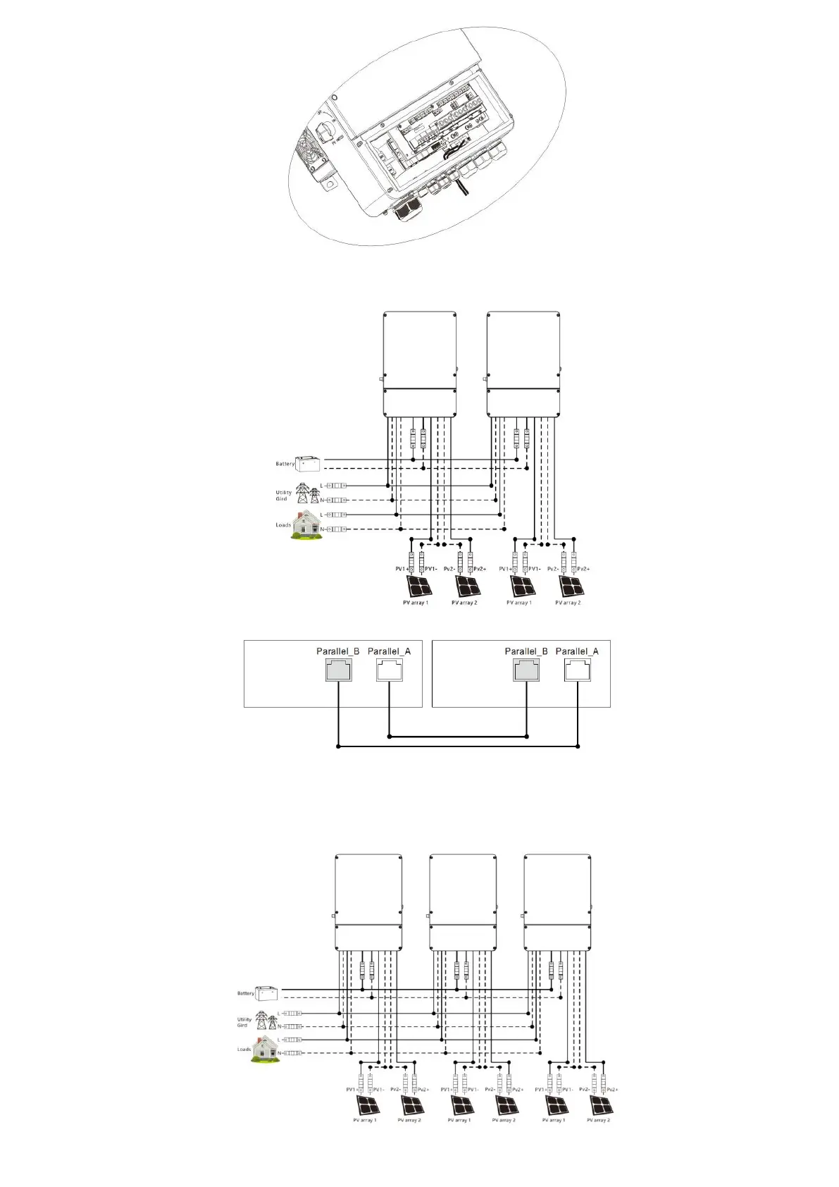 2. In case of parallel operation with multiple inverters, the schematic diagram of parallel connection is as follows: