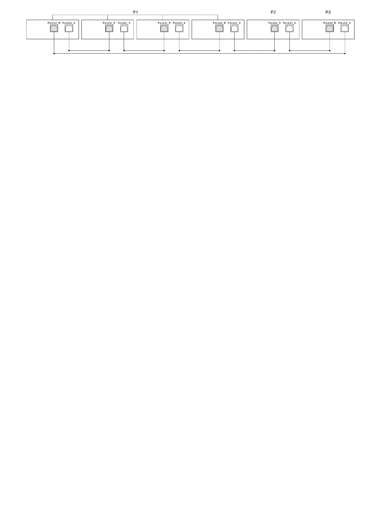 When in three-phase parallel connection, setting ”Parallel mode “ should be set as follows: all machines in
