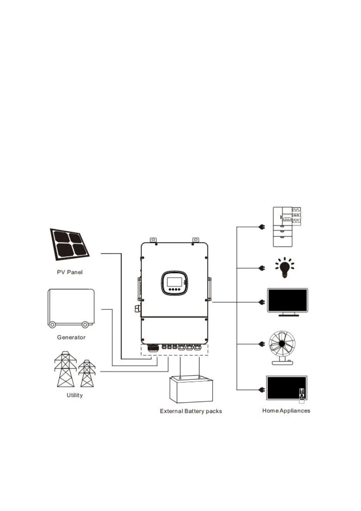 • Home load: Various household and office loads can be connected, including refrigerators, lamps,