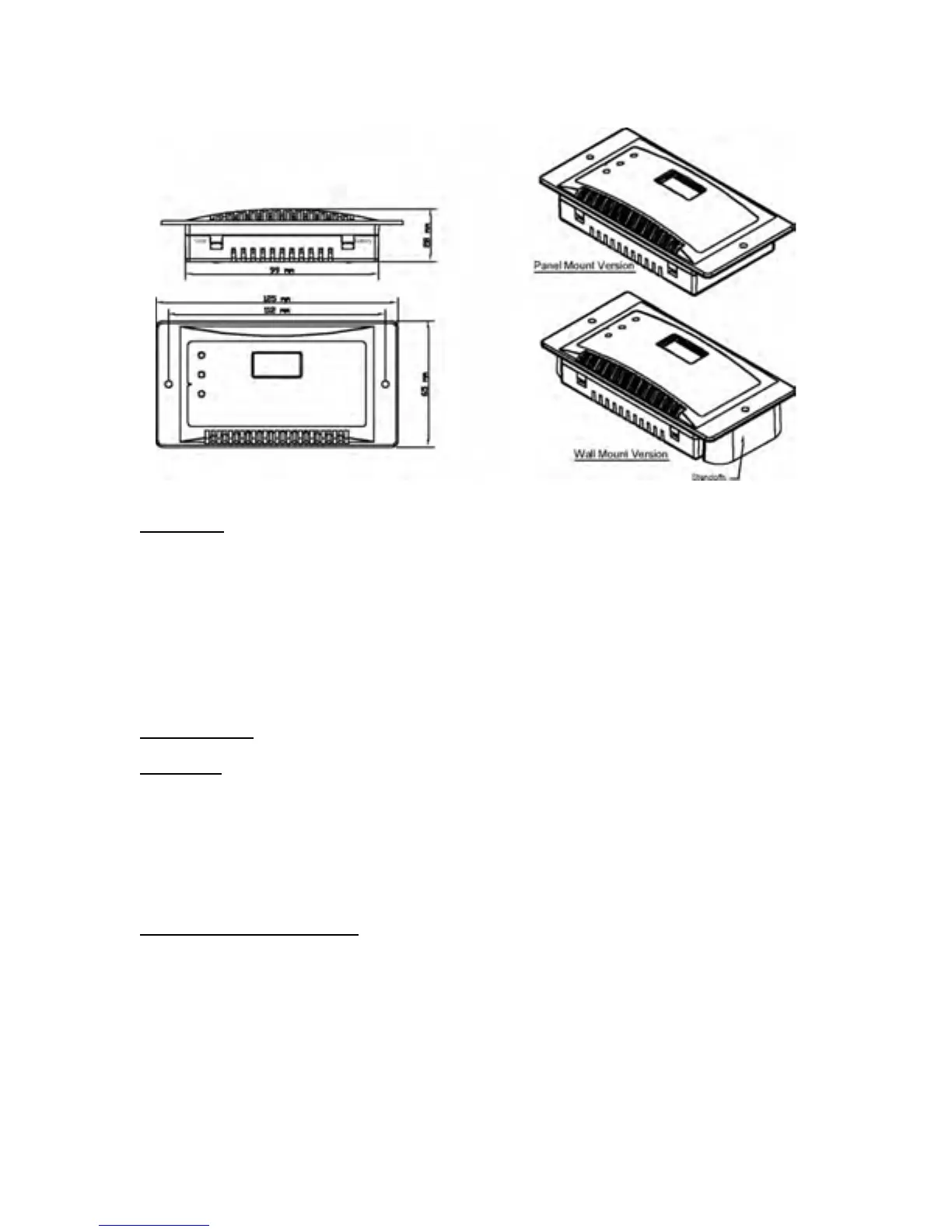 • Panel Mounted - The charge controller may be mounted flush with the wall.