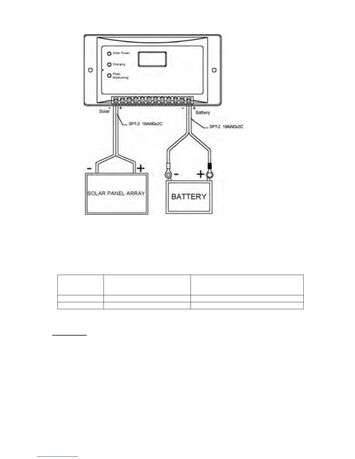 NOTE: The Solar Charge Controller will not initiate charge cycle if battery voltage is less than 4.0