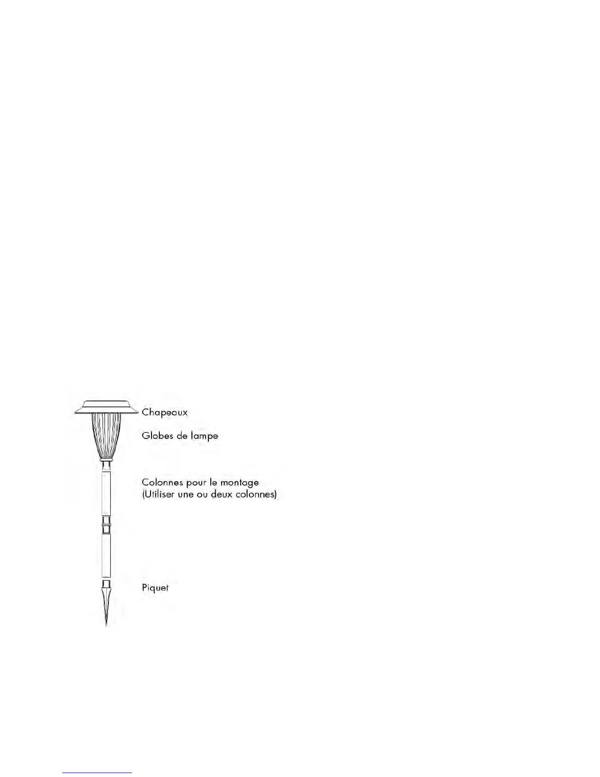1. Assembler les colonnes et planter le piquet dans le sol pour y fixer fermement la lampe. (Voir la figure