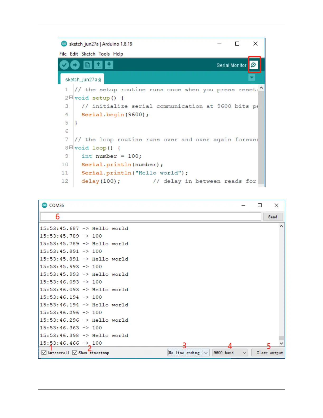 4. Here is the Serial Monitor.