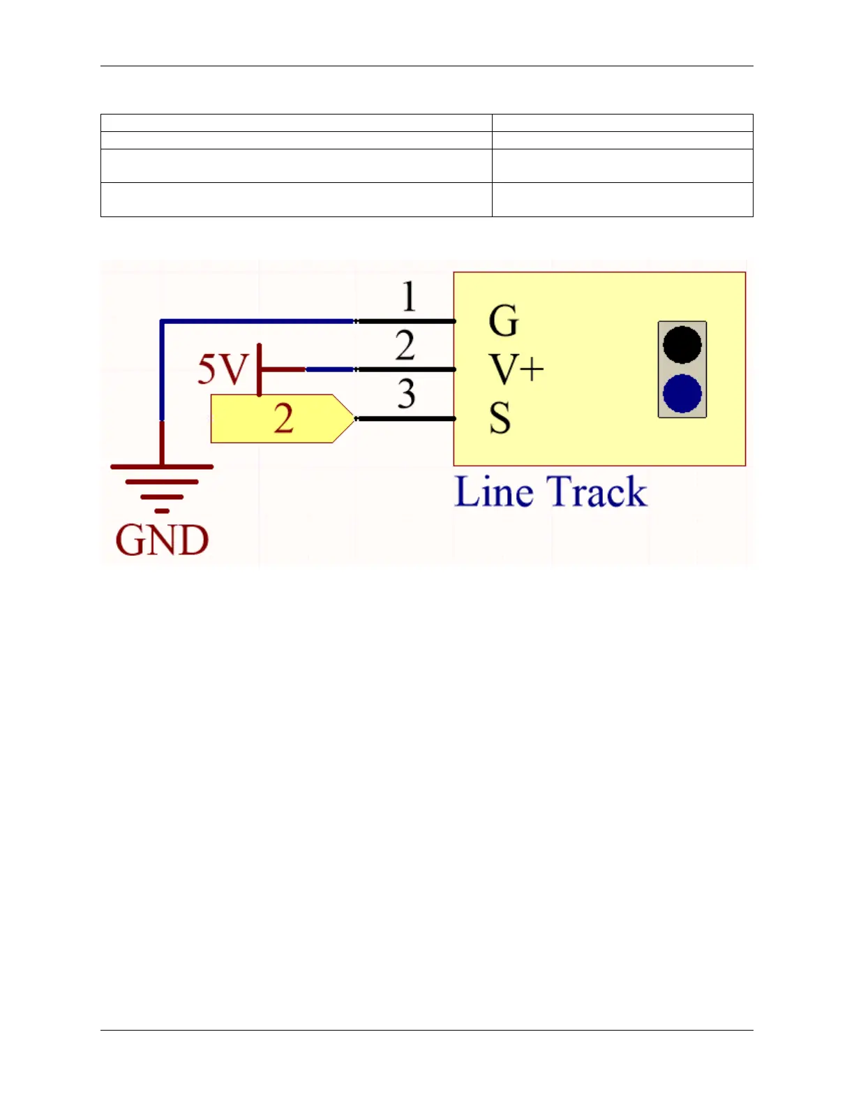 The digital pin 2 is used to read the signal of line track module. We get the VCC of the module connected to 5V, GND