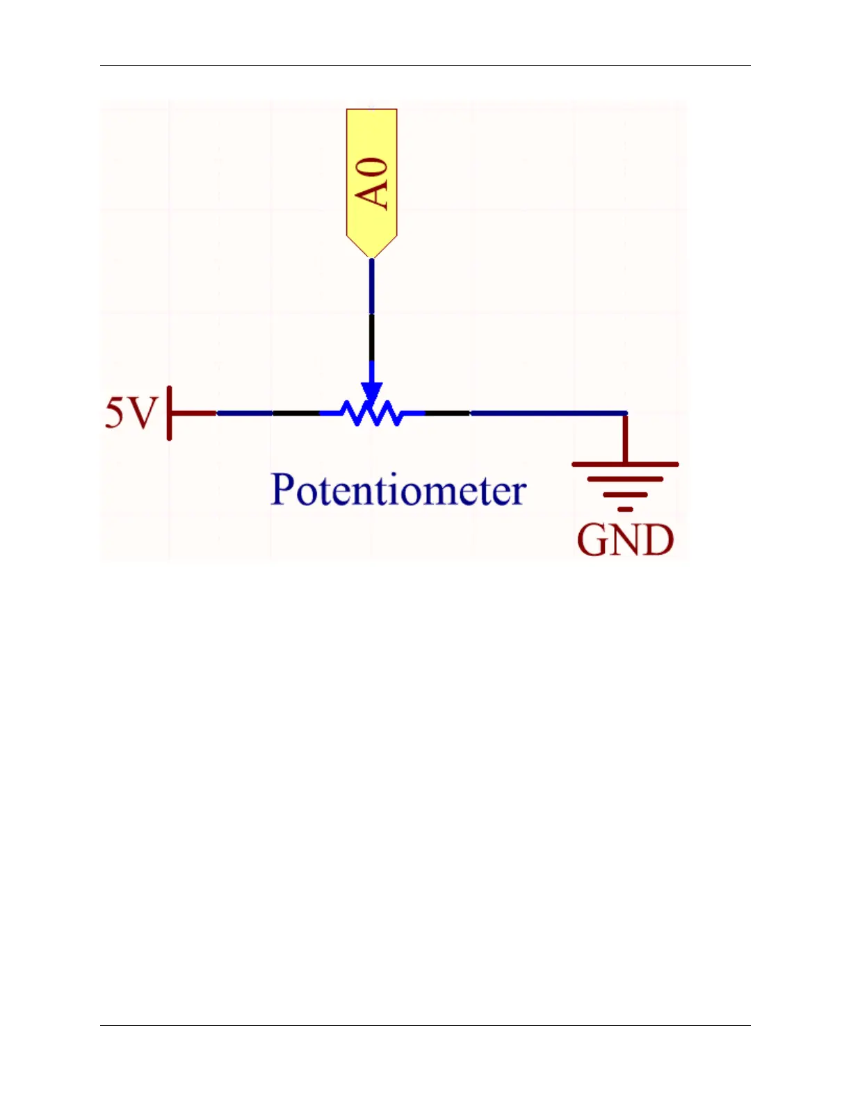 In this example, we use the analog pin (A0) to read the value of the potentiometer. By rotating the axis of the po-
