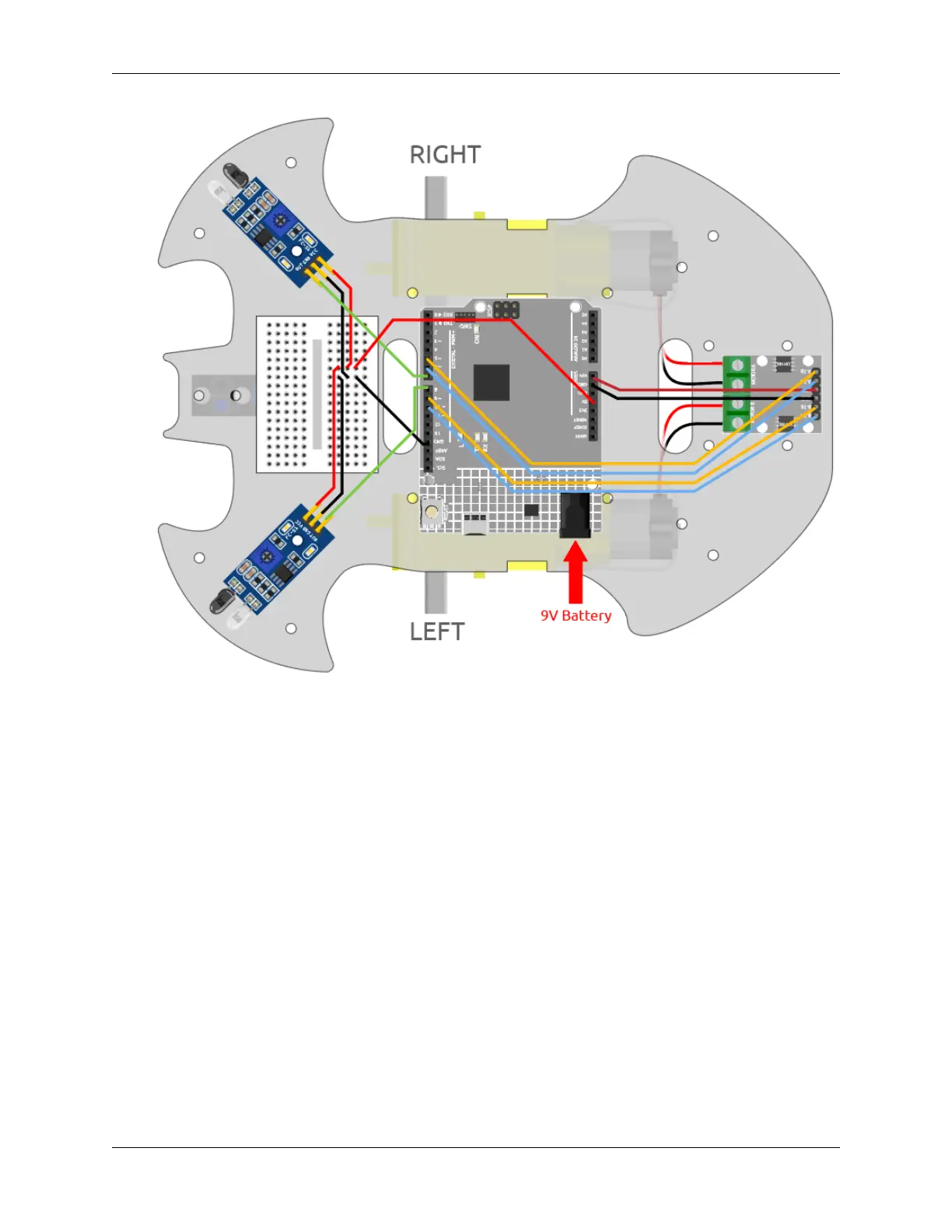 Place a notebook or any other flat object about 5cm in front of the IR obstacle avoidance.