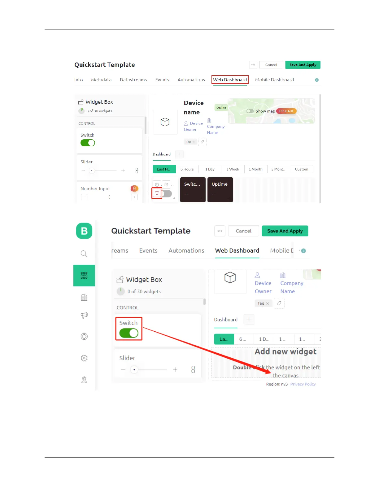 7. Drag and drop a switch widget from the Widget Box on the left.