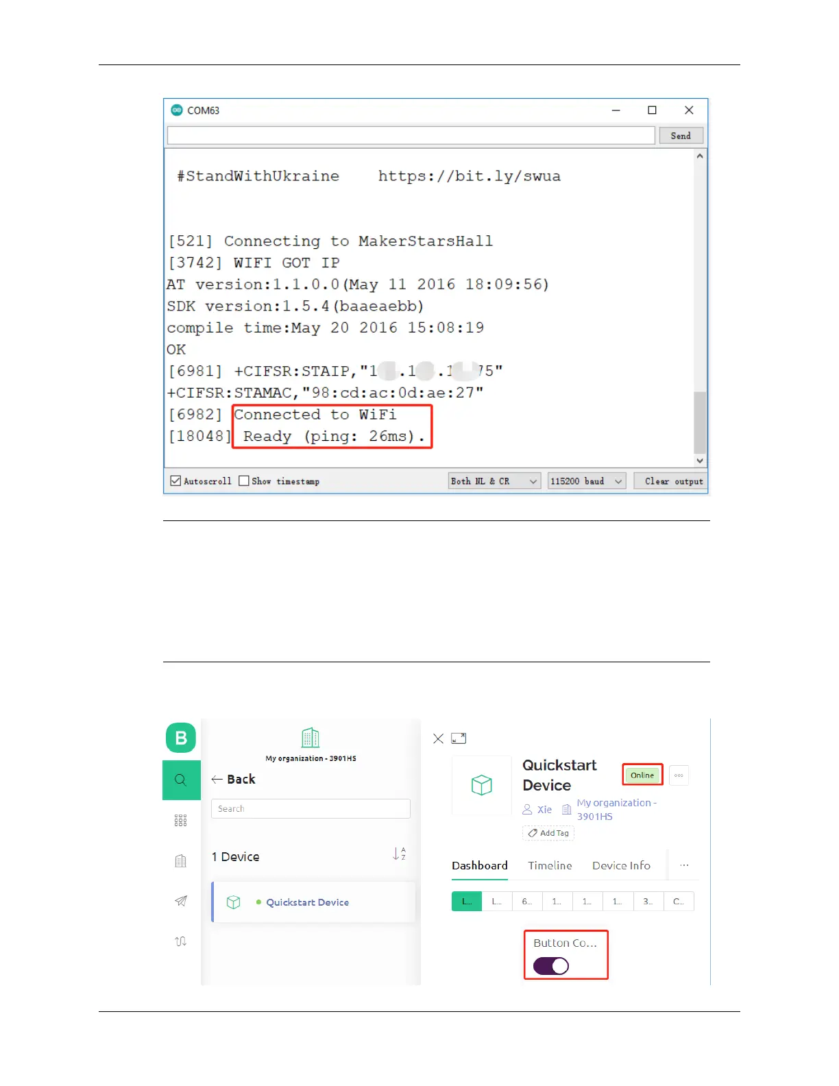 5. Back at Blynk, you can see that the status has changed to online and you can now use the switch widget on blynk