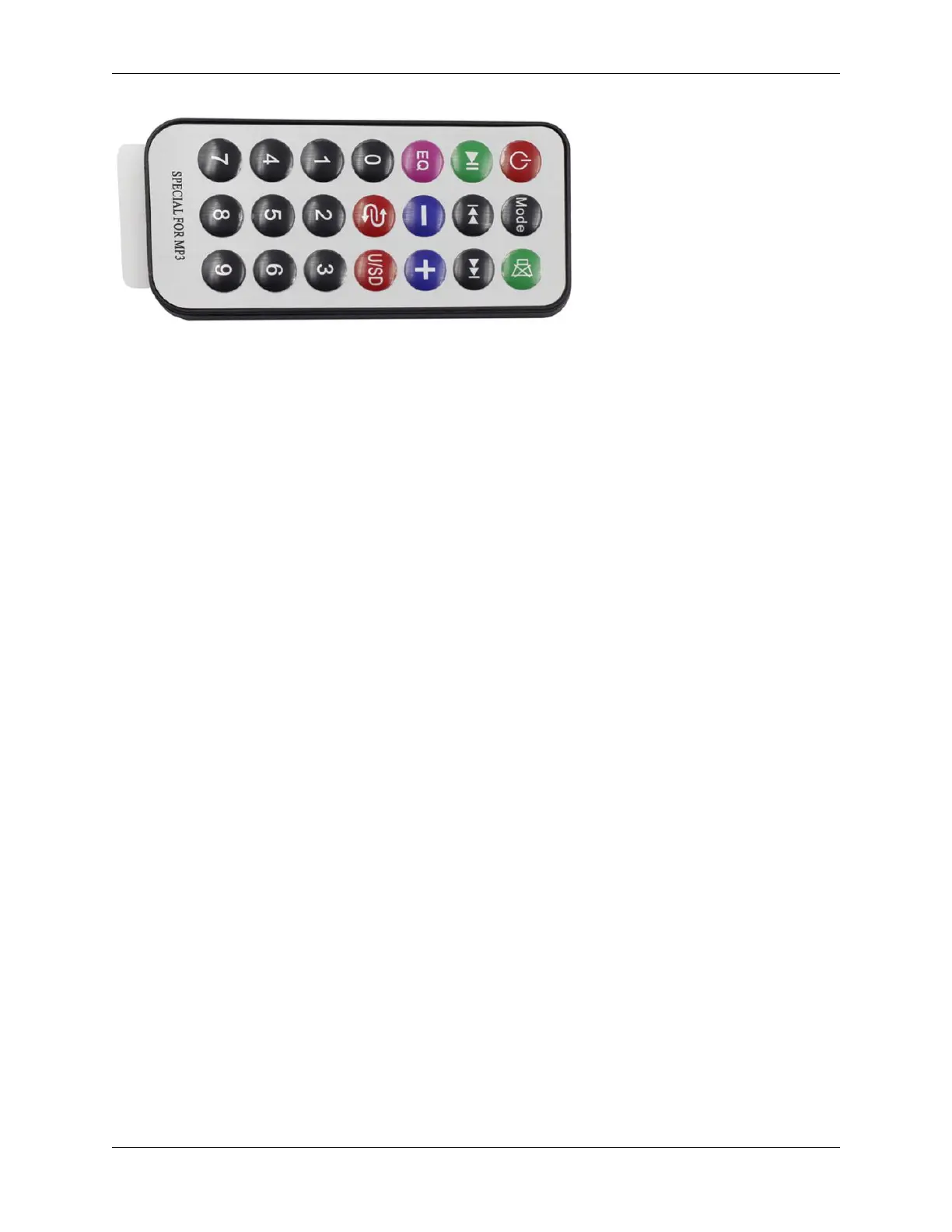 This is a Mini thin infrared wireless remote control with 21 function buttons and a transmitting distance of up to 8