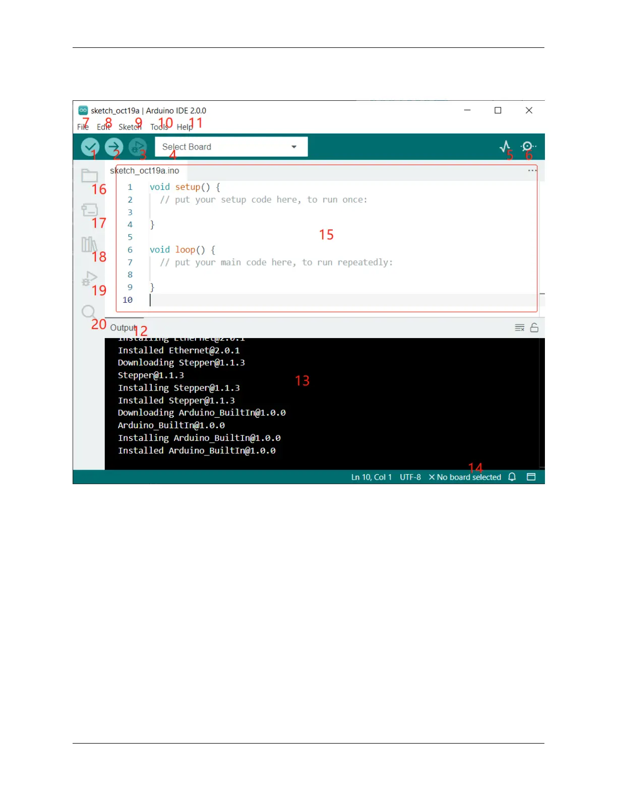 9. Sketch: Includes operations like Verify, Upload, Add files, etc. More important function is Include Library –