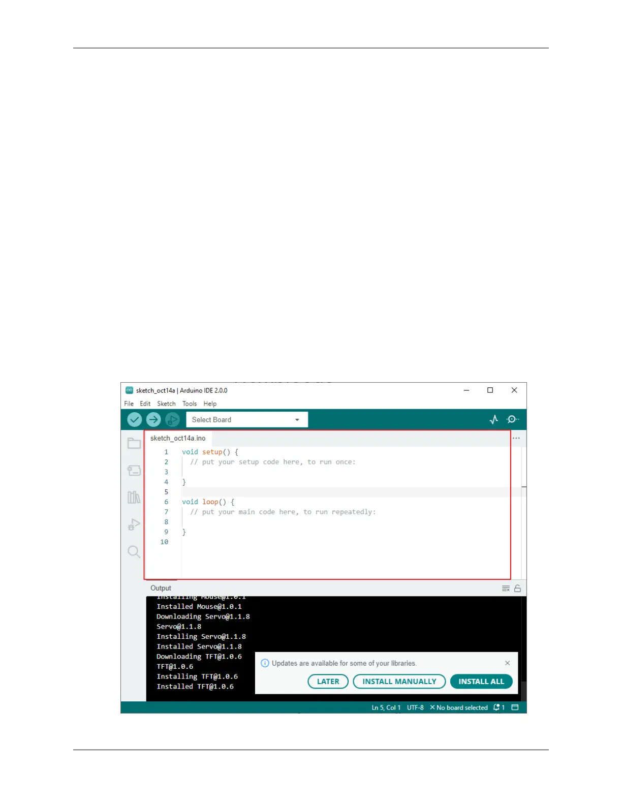 1. When you open the Arduino IDE for the first time or create a new sketch, you will see a page like this, where the