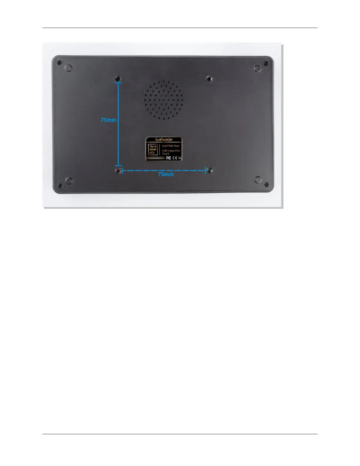 On the back of the touch screen are 4 screw holes (M4) with a 75mm spacing. They are used to help to hang the screen
