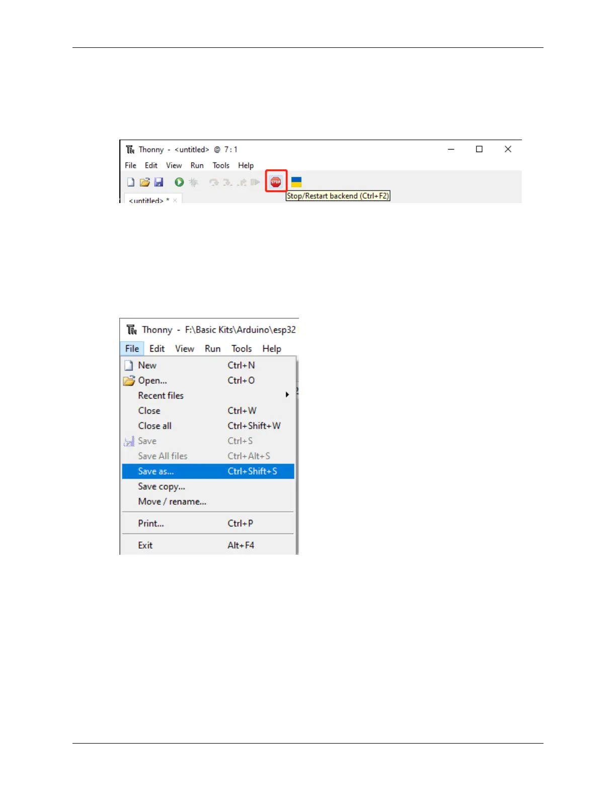 The code can be saved as a separate file within the MicroPython drive(ESP32) by clicking on File