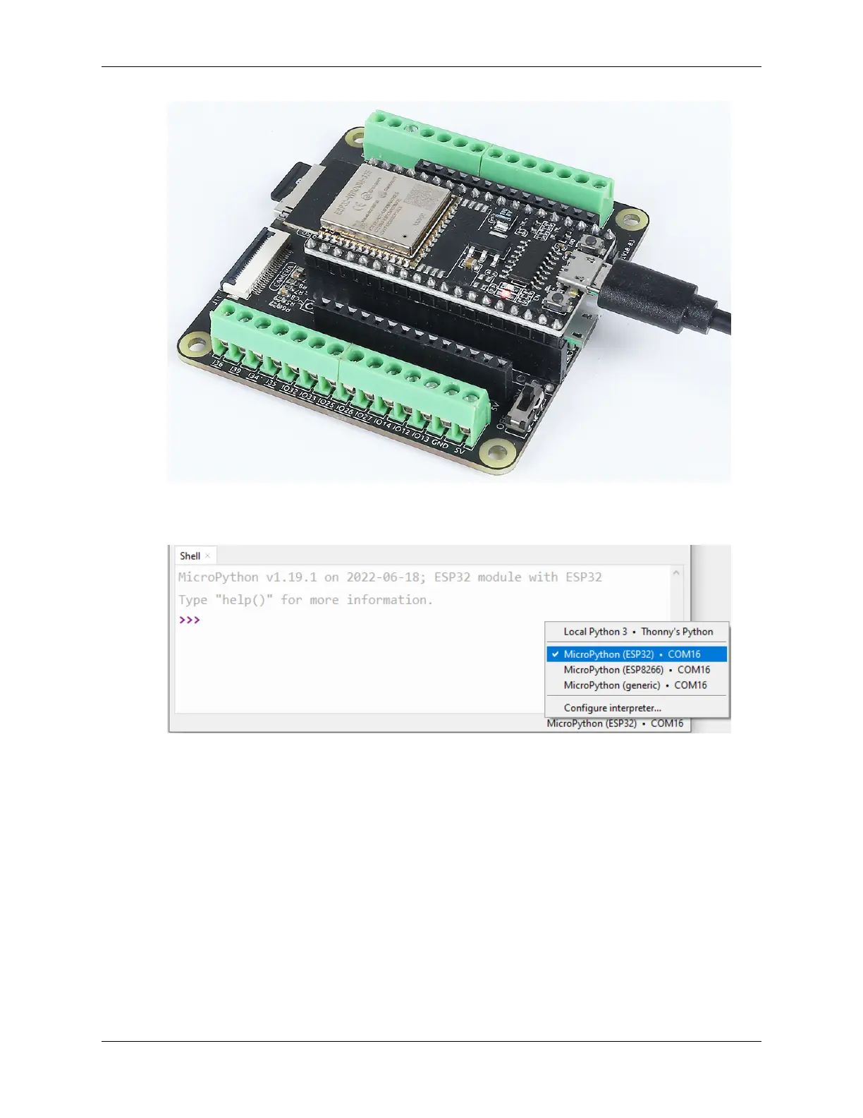 Select the “MicroPython (ESP32).COMxx” interpreter in the bottom right corner.