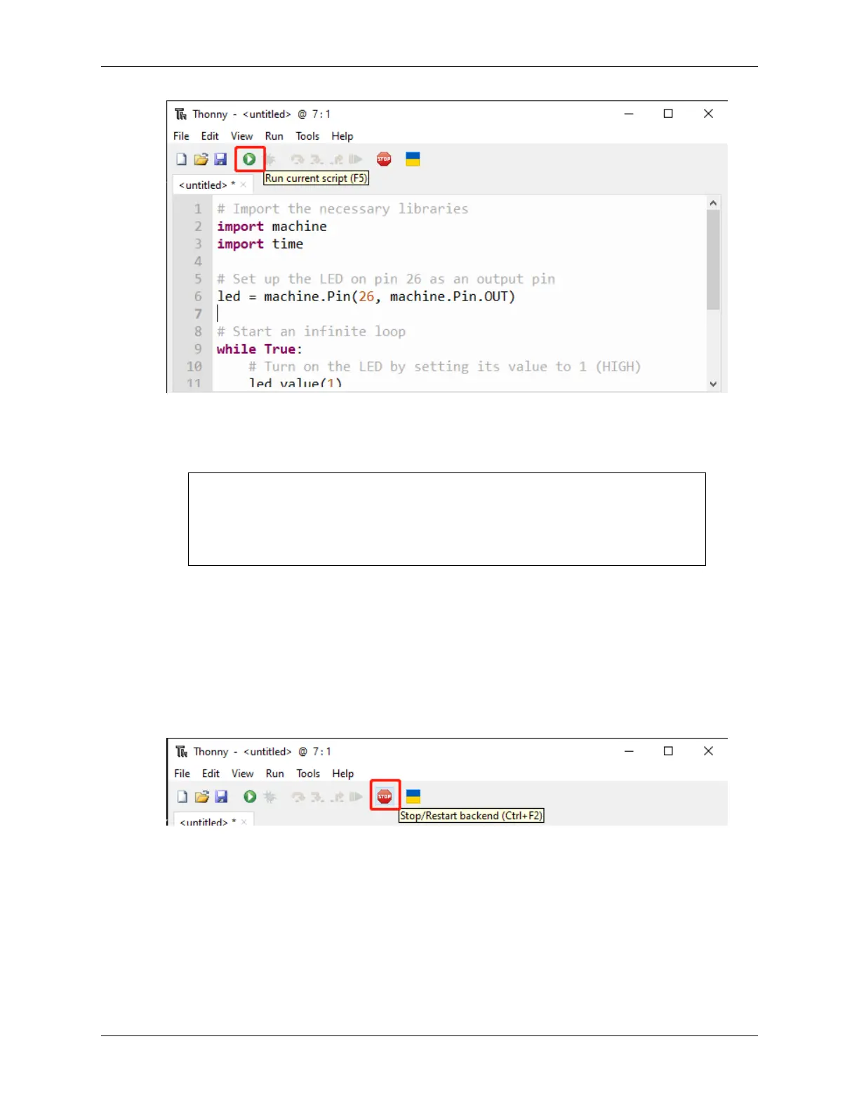 • The third line is a command from Thonny telling the MicroPython interpreter on your Pico W to