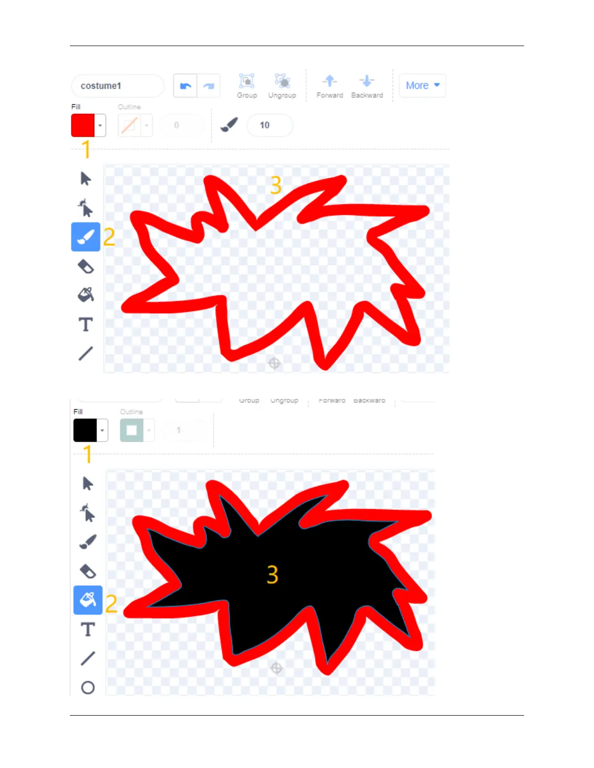 Select a color again, click the Fill tool, and move the mouse inside the pattern to fill it with a color.