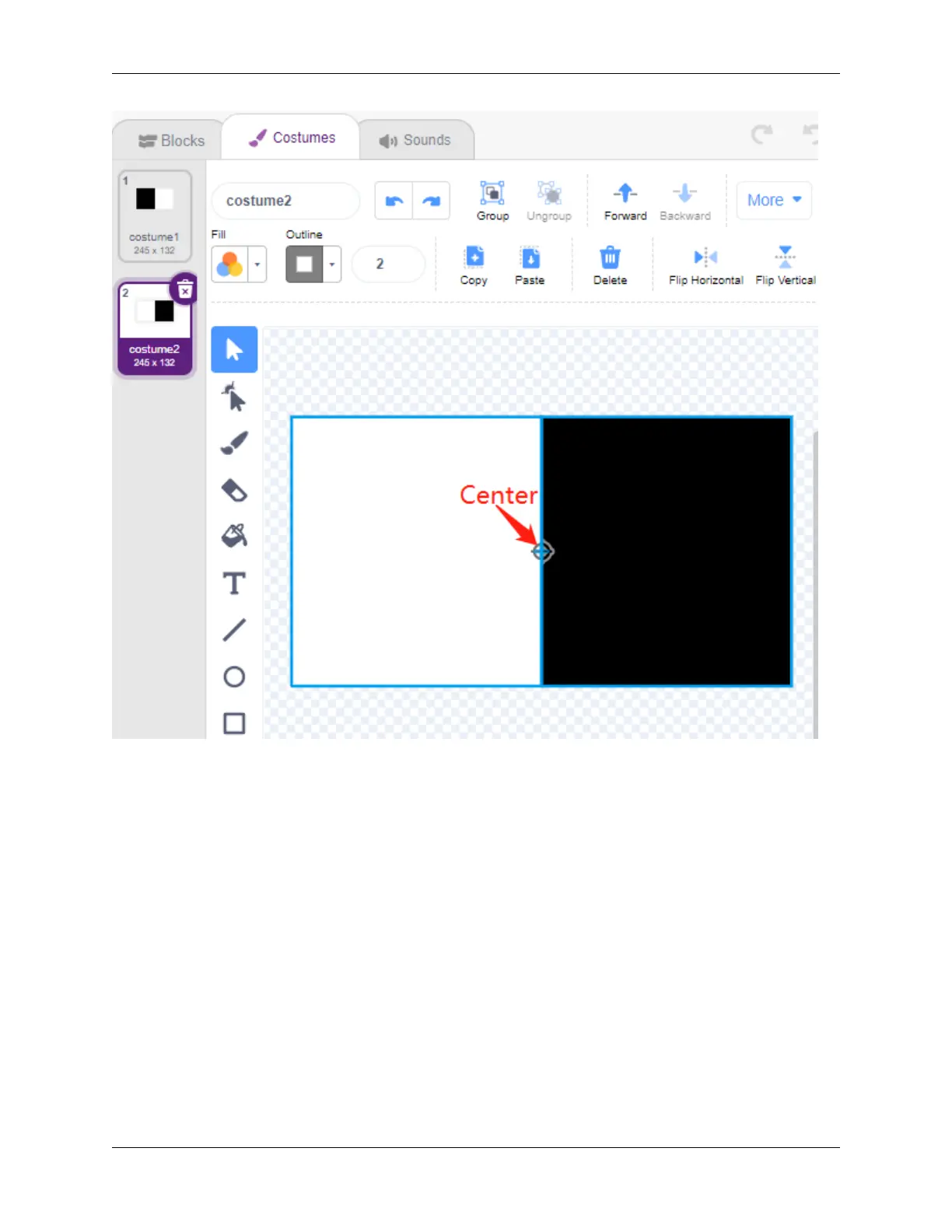 Now go back to the Blocks page and set the initial position of the Tile sprite so that it is at the top of the stage.