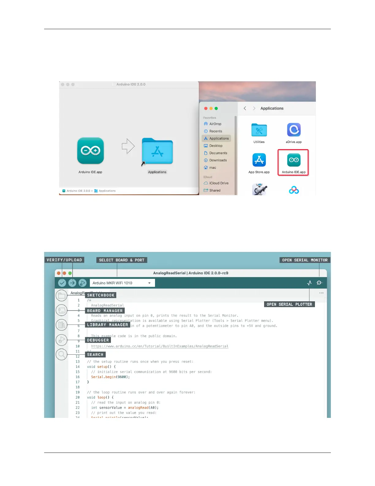 the on-screen instructions to drag the Arduino IDE app into the Applications folder. After a few seconds,