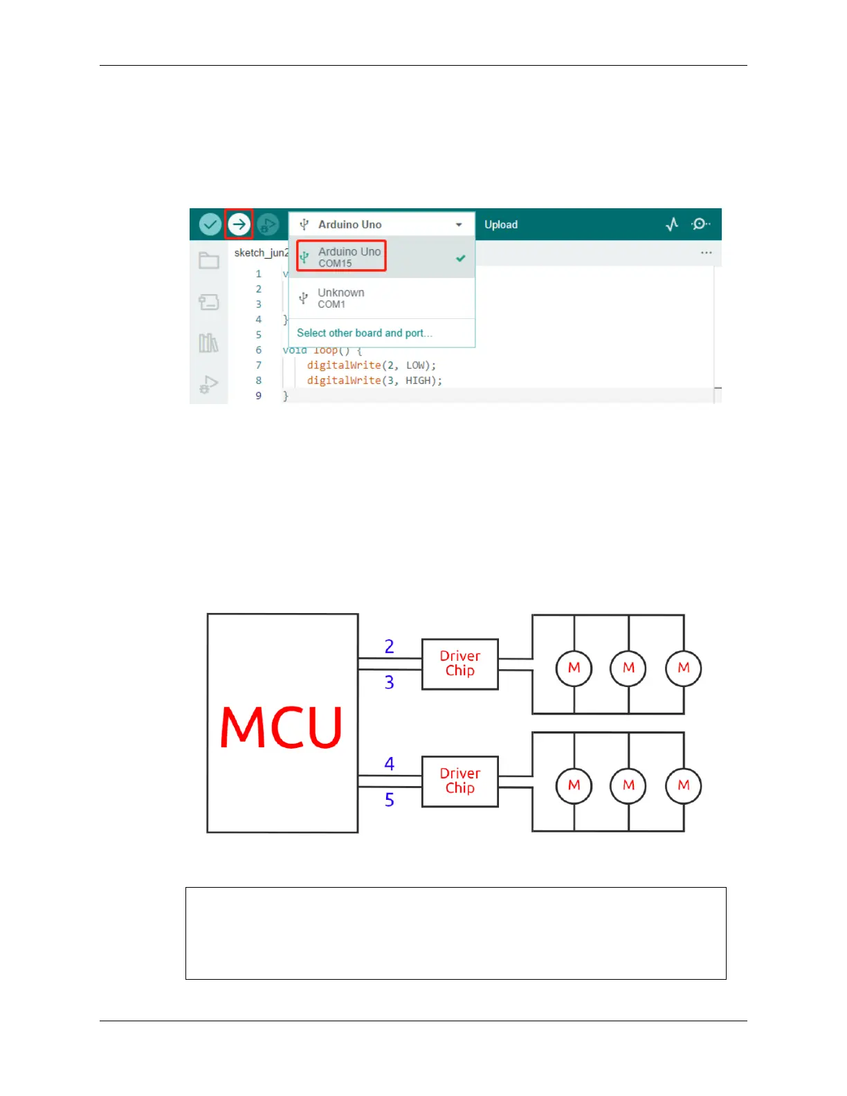 3. Once the code has been successfully uploaded, you will see the motor start to rotate clockwise.