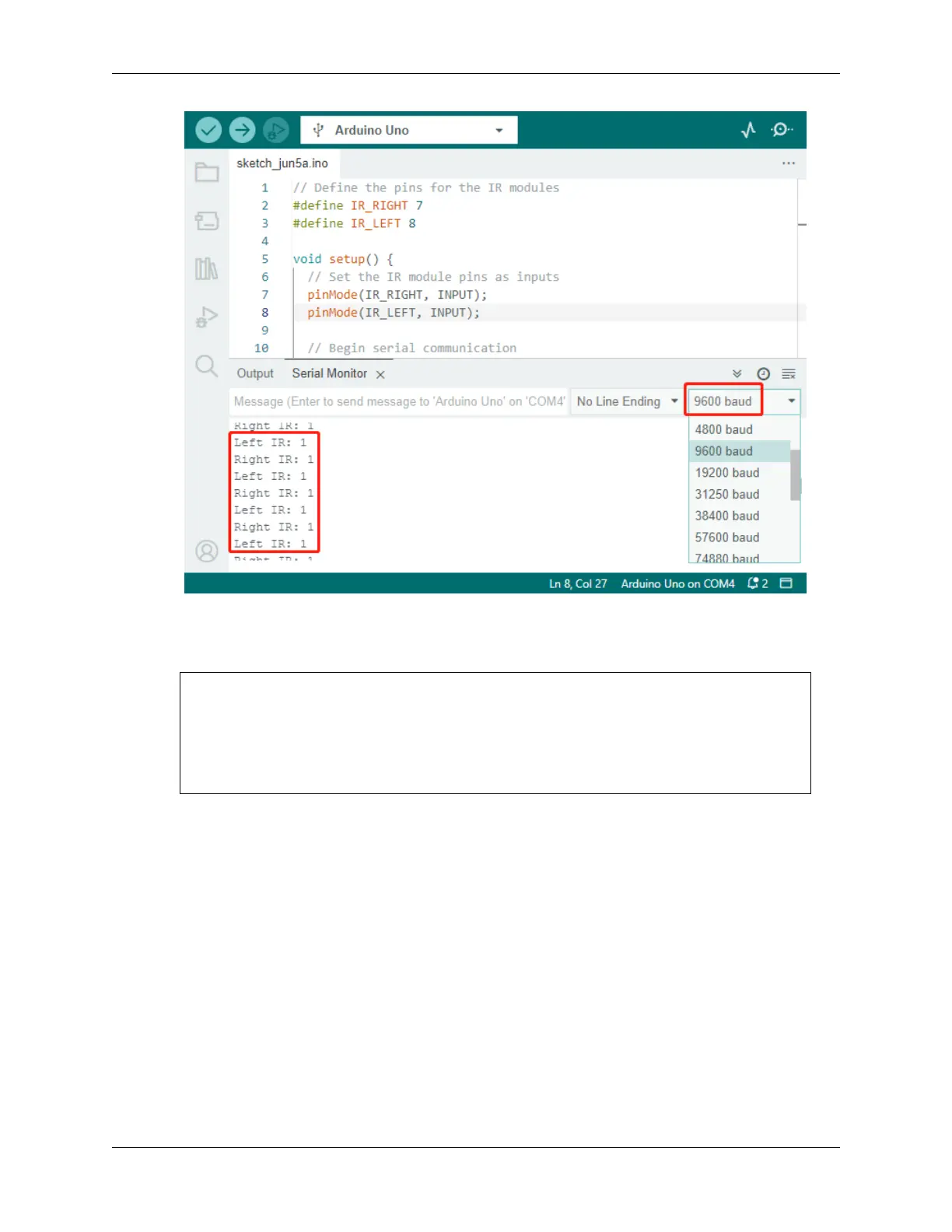 5. To put our system to the test, wave a “space rock” (your hand) in front of one of the sensors. You’ll see the value