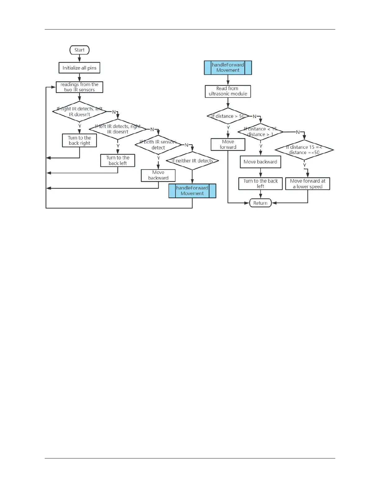 Note that the handleForwardMovement() function is where we’ve integrated the behavior of the ultrasonic sensor.