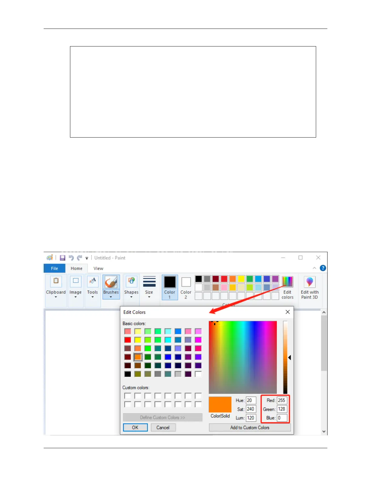Here’s a tip: You can use the Paint tool on your computer to determine the RGB values of your desired color.