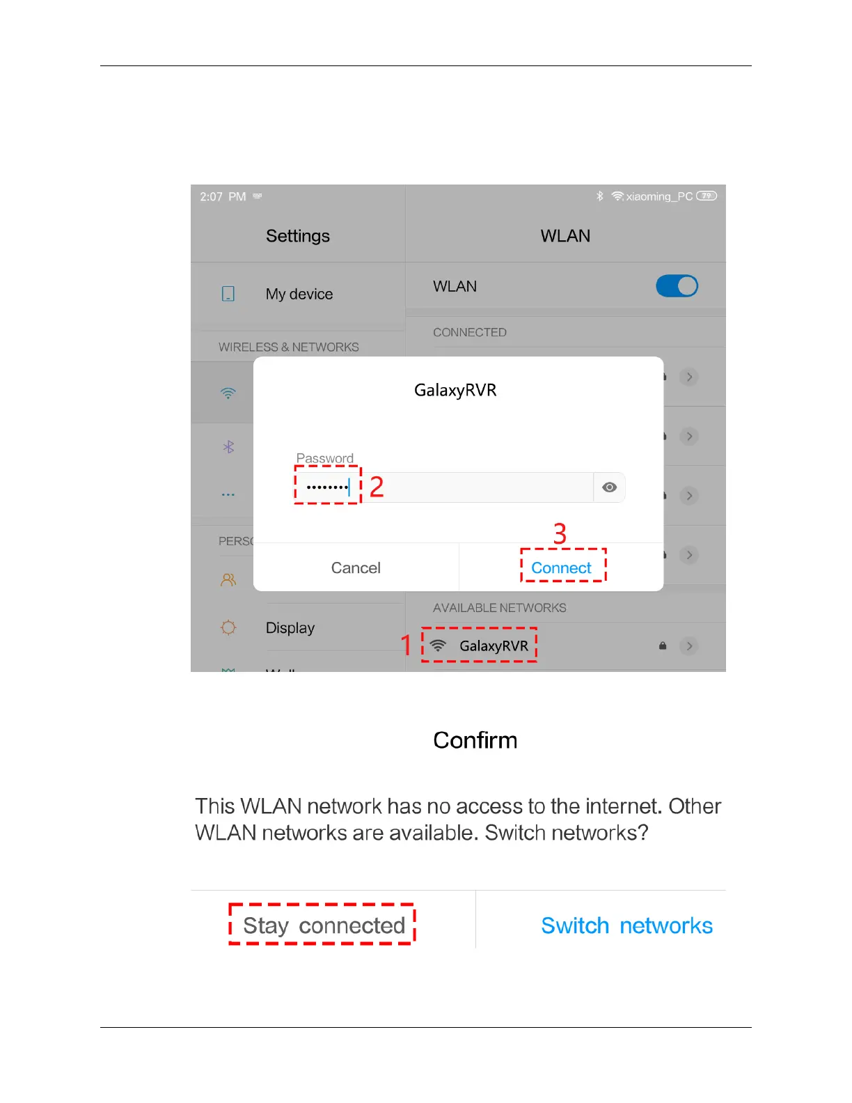 • Find GalaxyRVR on the list of available networks on your mobile device (tablet or smartphone), enter the