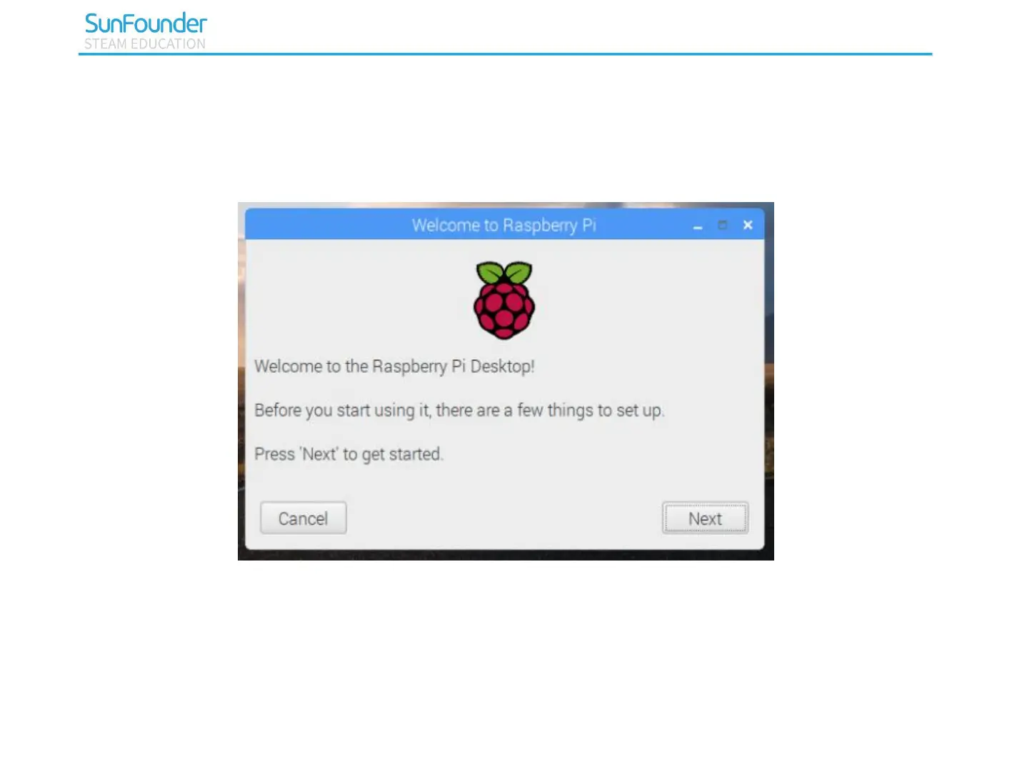 If you run Raspberry Pi for the first time, the application of Welcome to Raspberry Pi” pops up and guides