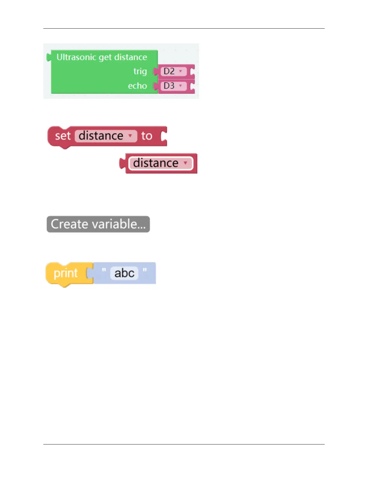 need to use the distance to an obstacle, a Variable can be used to report the same distance value to each function,