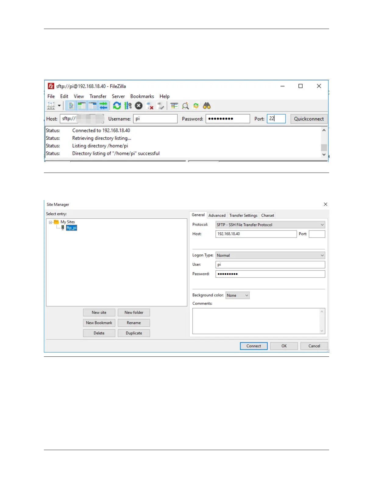 You can upload local files to Raspberry Pi by dragging and dropping them, or download the files inside Raspberry Pi