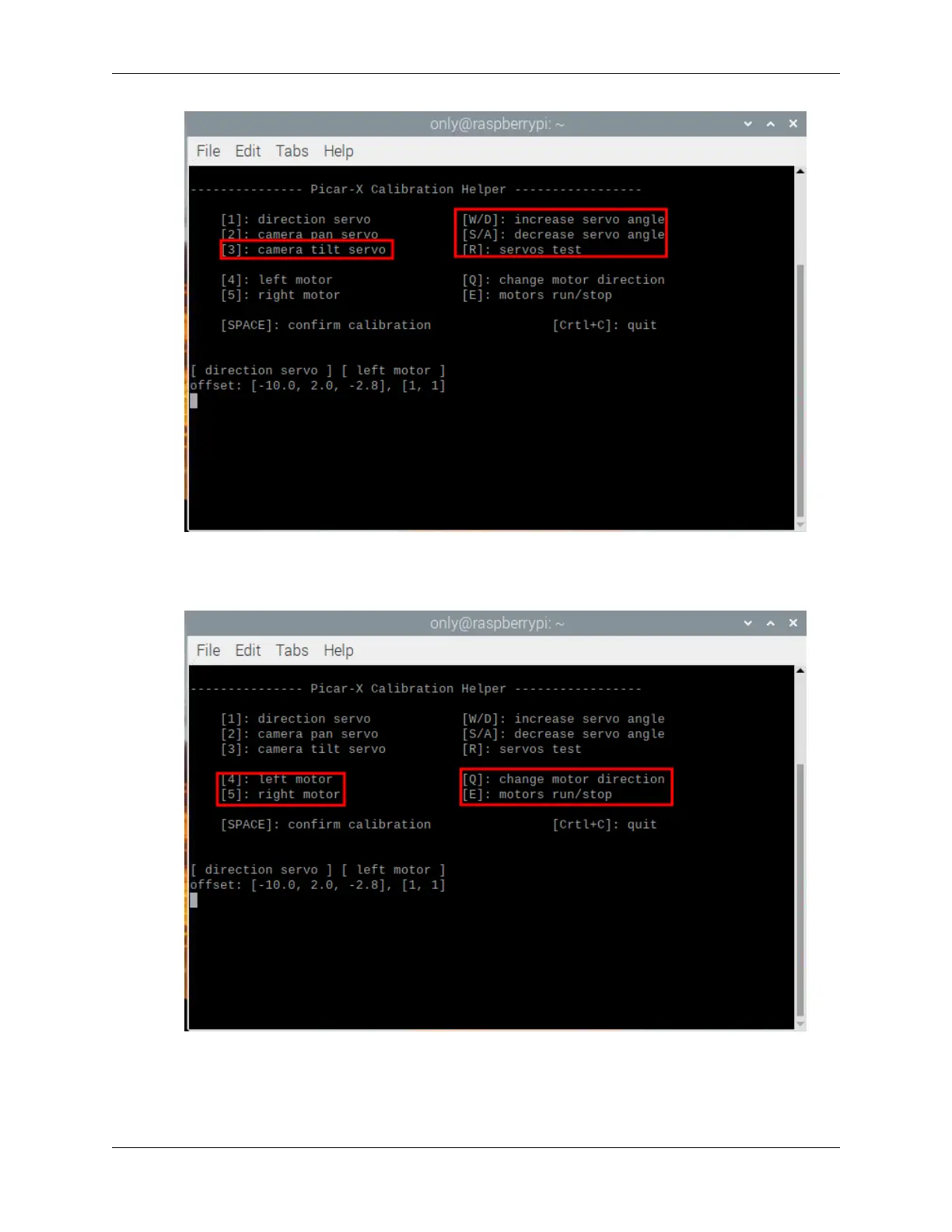 move forward normally. If not, use the number keys 4 and 5 to select the left and right motors, then press the Q