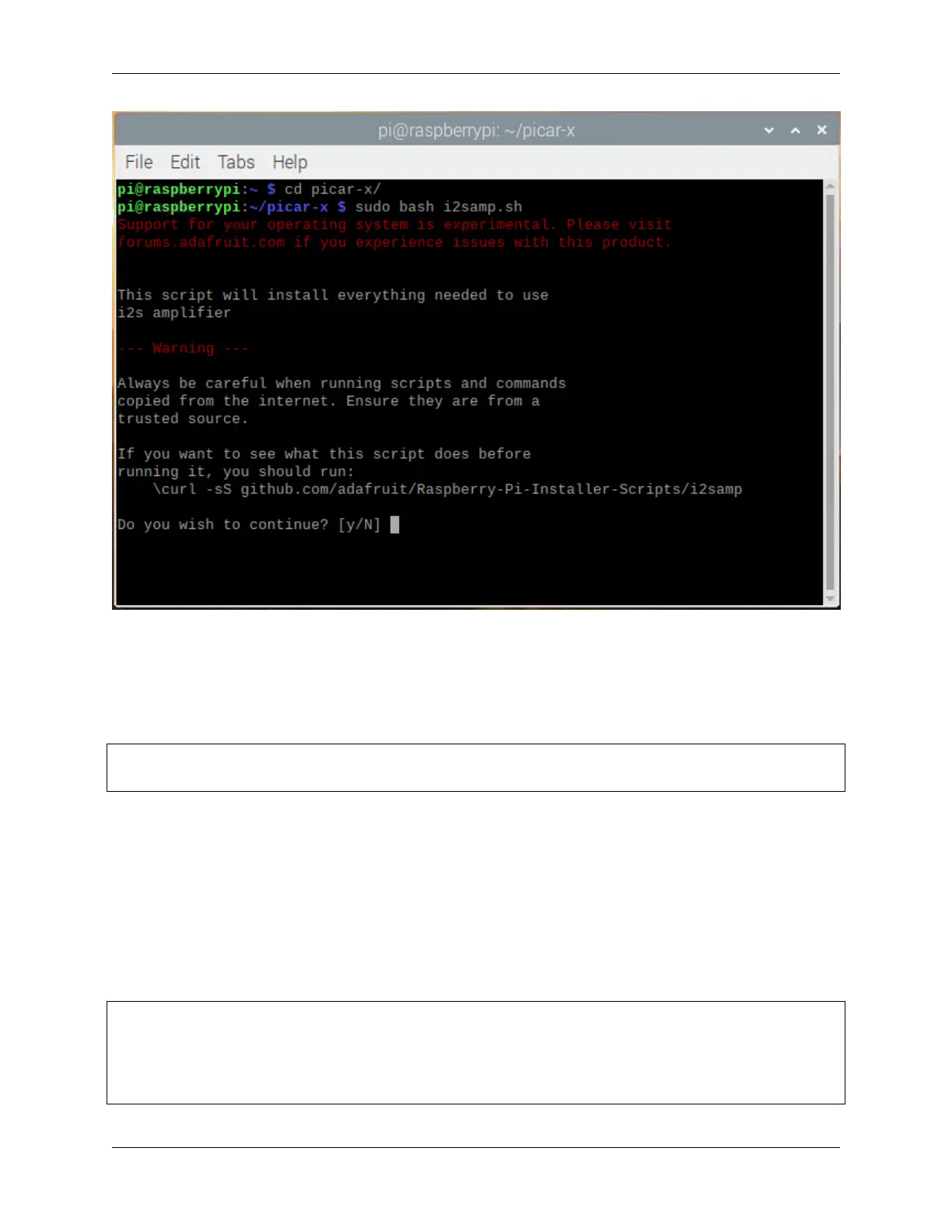 After rebooting, run the i2samp.sh script again to test the amplifier. If a sound successfully plays from the speaker,