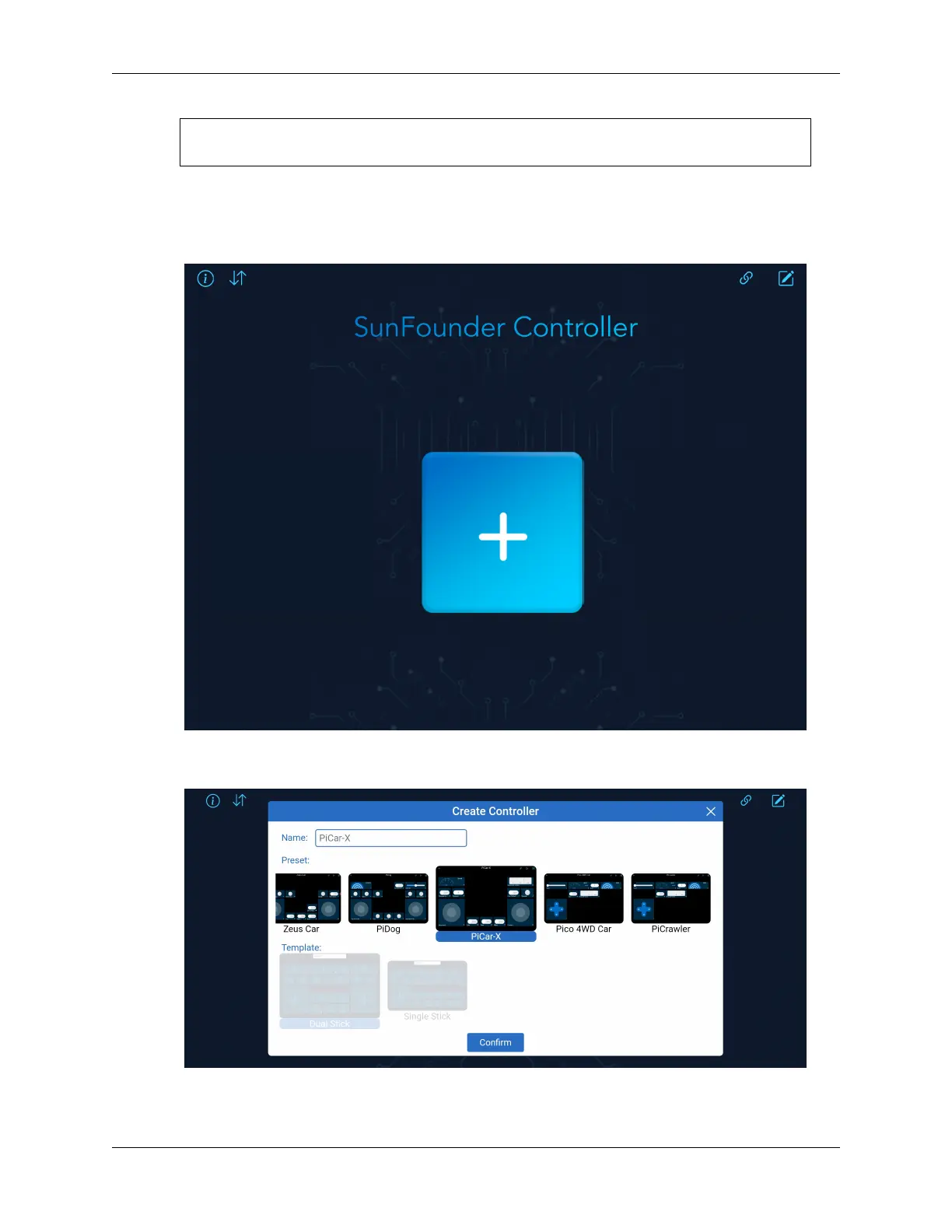 Create a new controller by clicking on the + sign in the SunFounder Controller APP.