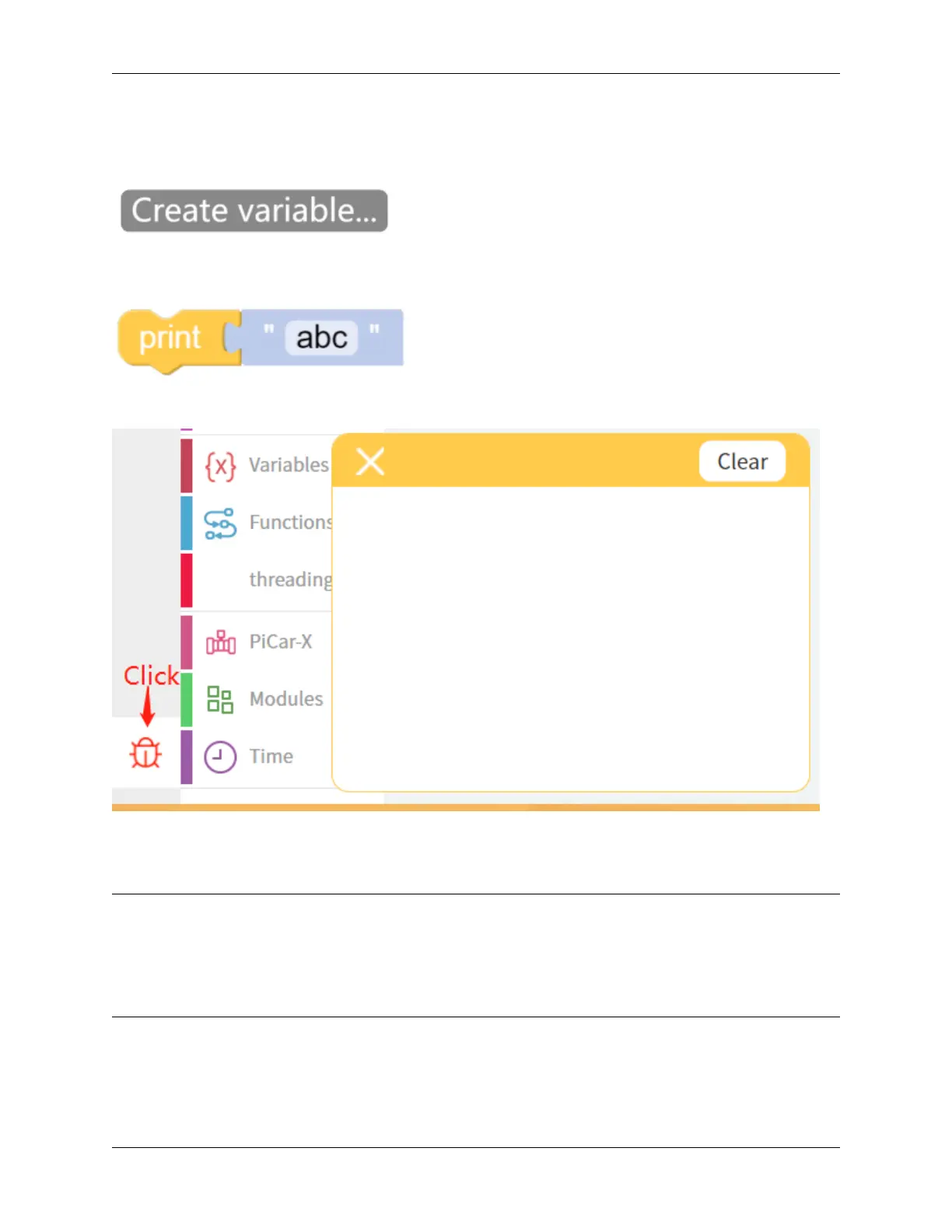 Once the code is running, enable the debug monitor by clicking the Debug icon in the bottom left corner.