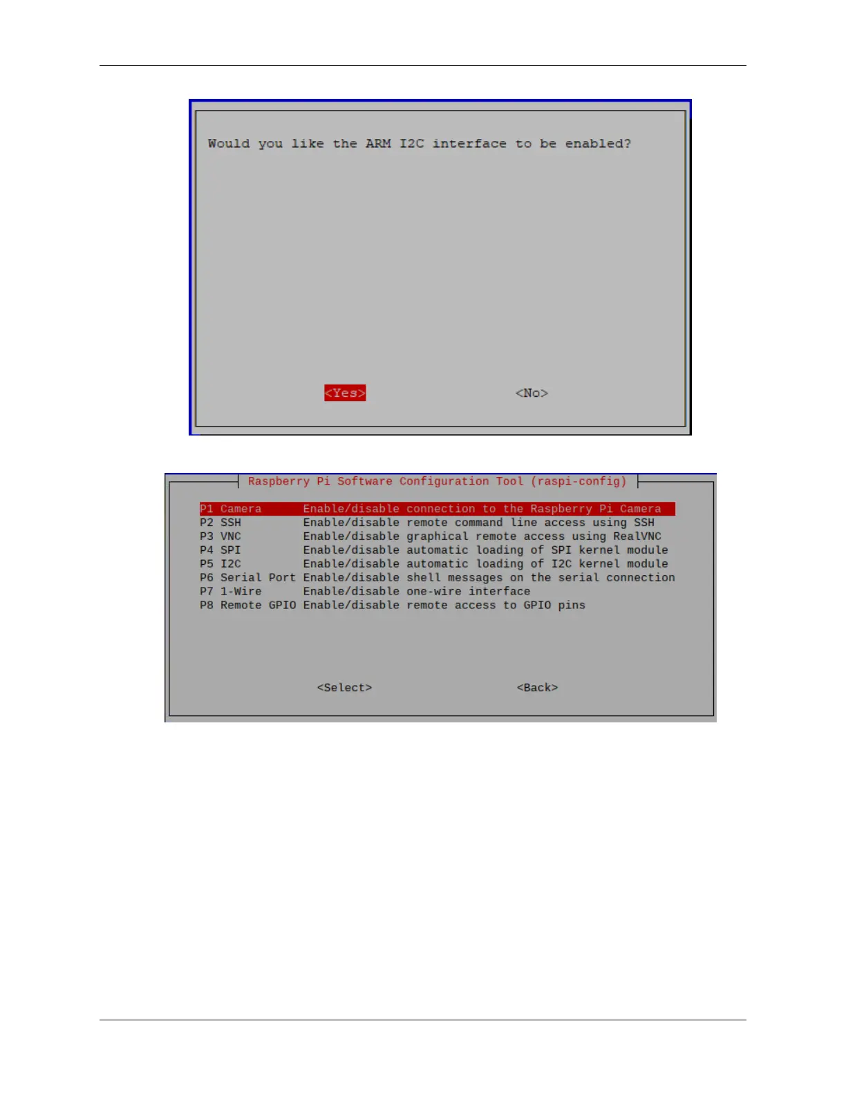 5. Go to 3 Interfacing Options again and select P1 Camera.