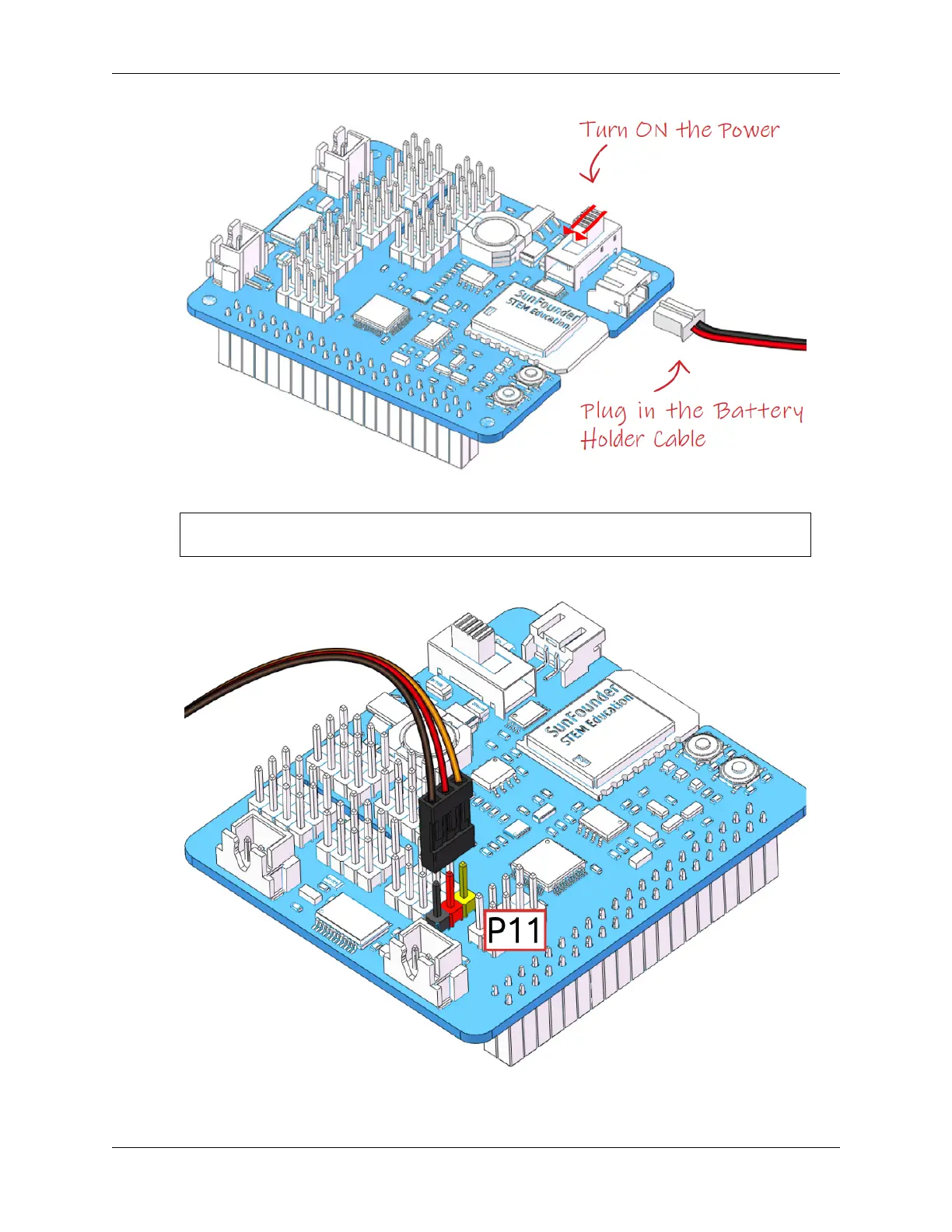 4. Next, plug the servo cable into the P11 port as follows.