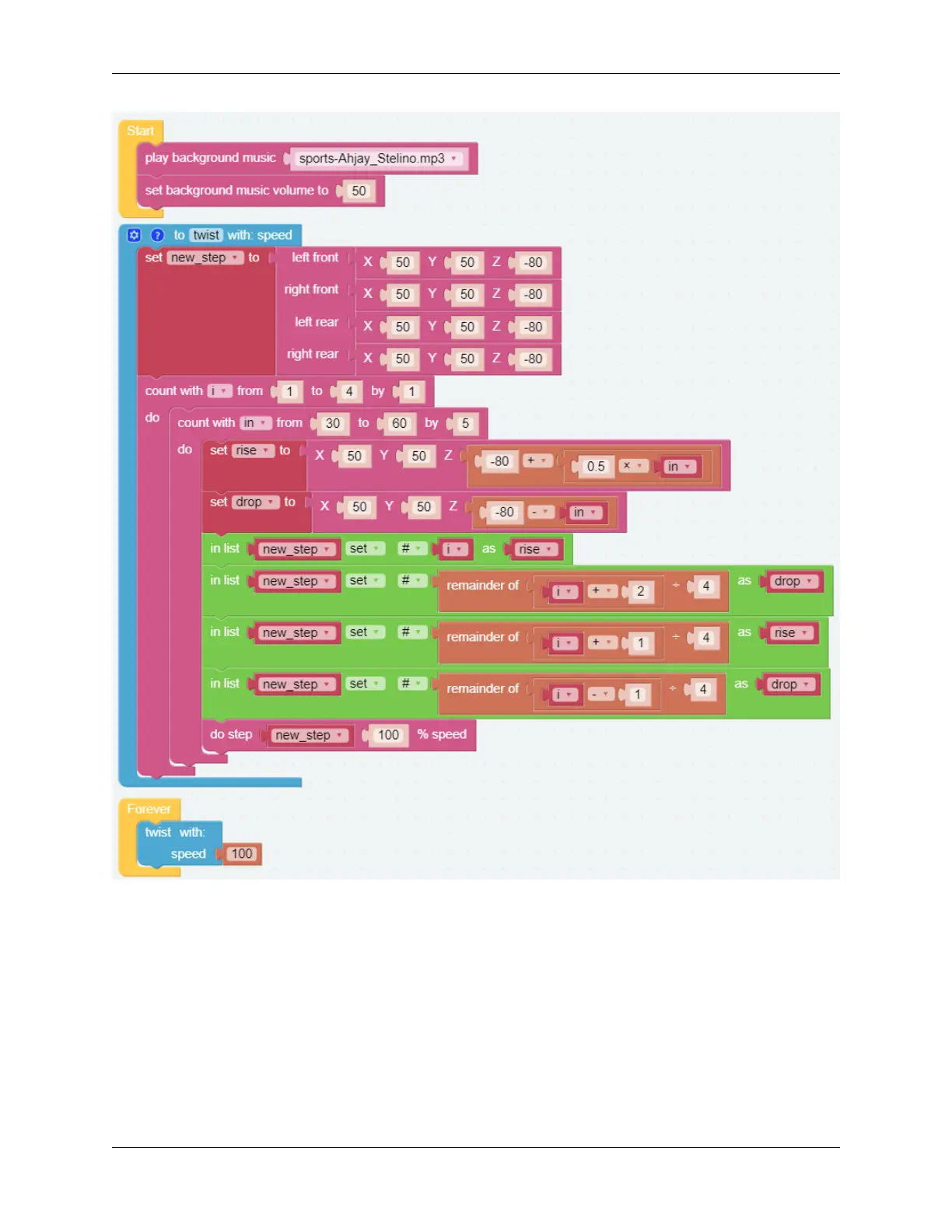 It uses two layers of for loops to make the new_step array produce continuous and regular changes, and at the same