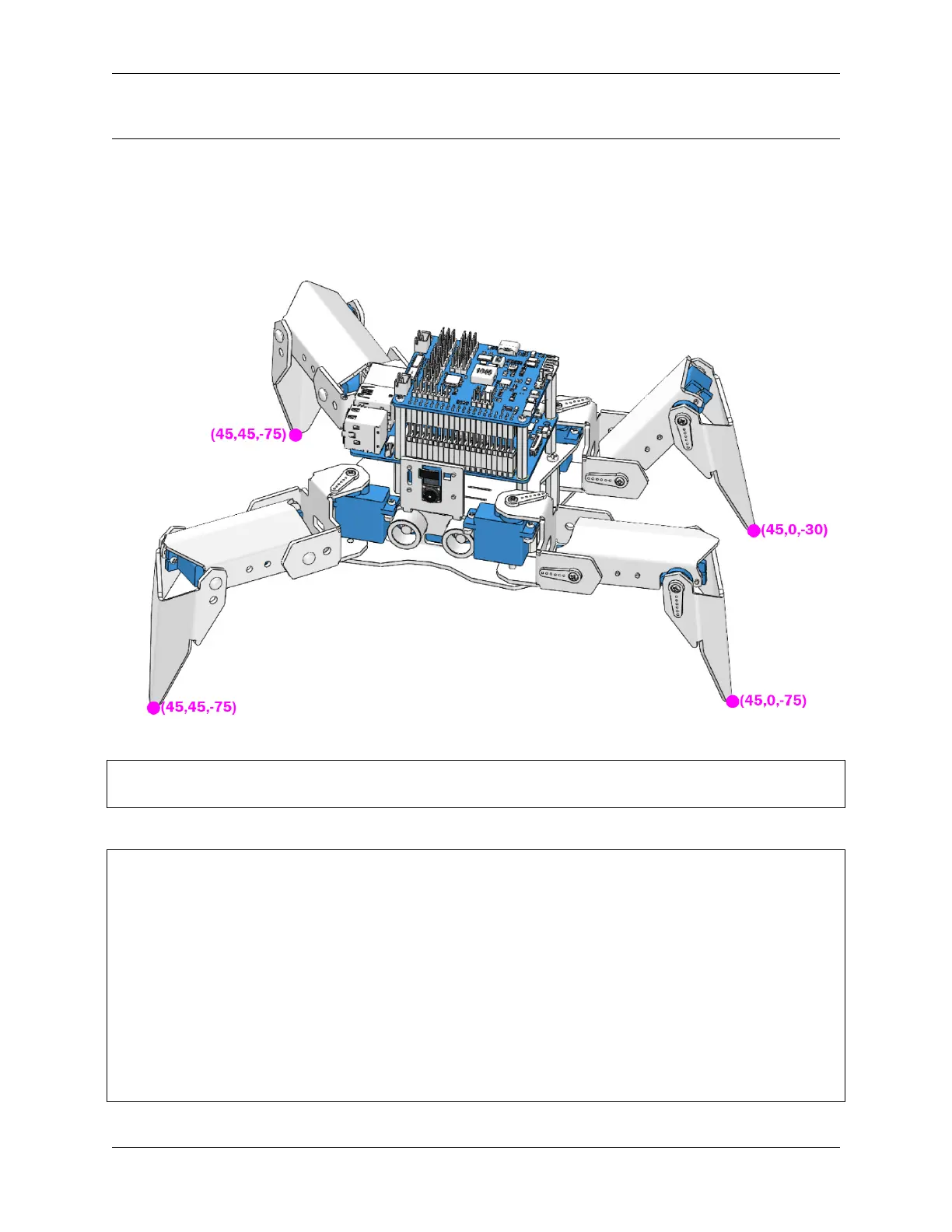 PiCrawler can assume a specific posture by writing a coordinate array. Here it assumes a raised right rear foot posture.