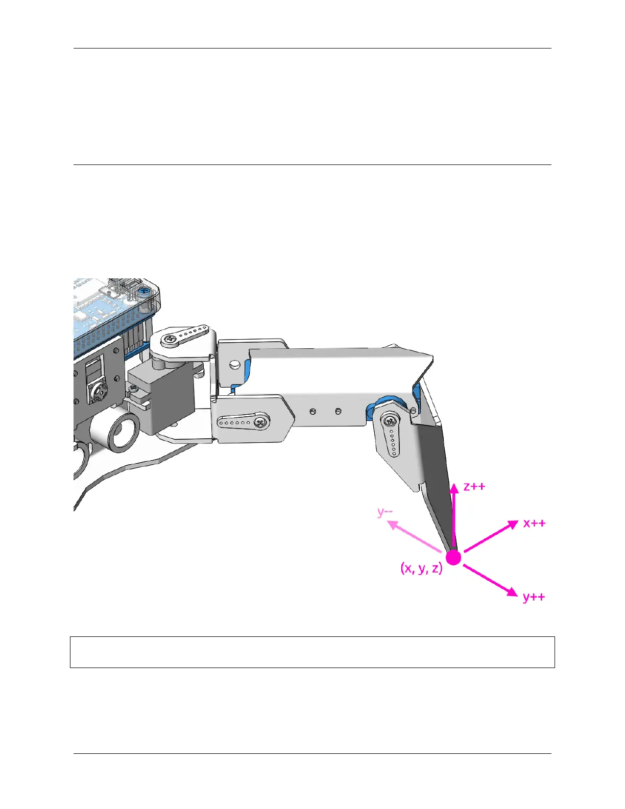 • Press w, a, s, d, r, and f to slowly control the PiCrawler’s coordinate values.