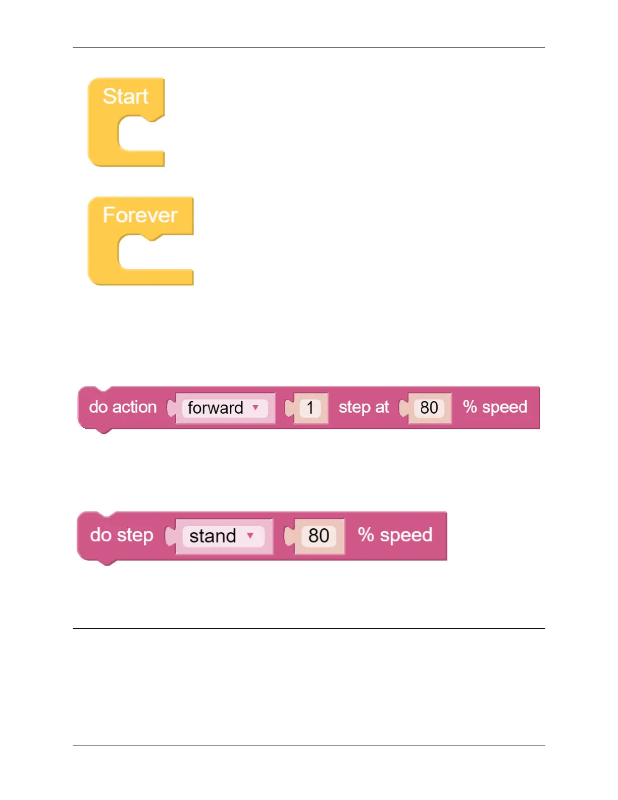 All Ezblock projects contain these two blocks. The Start block runs at the beginning of the program and is executed