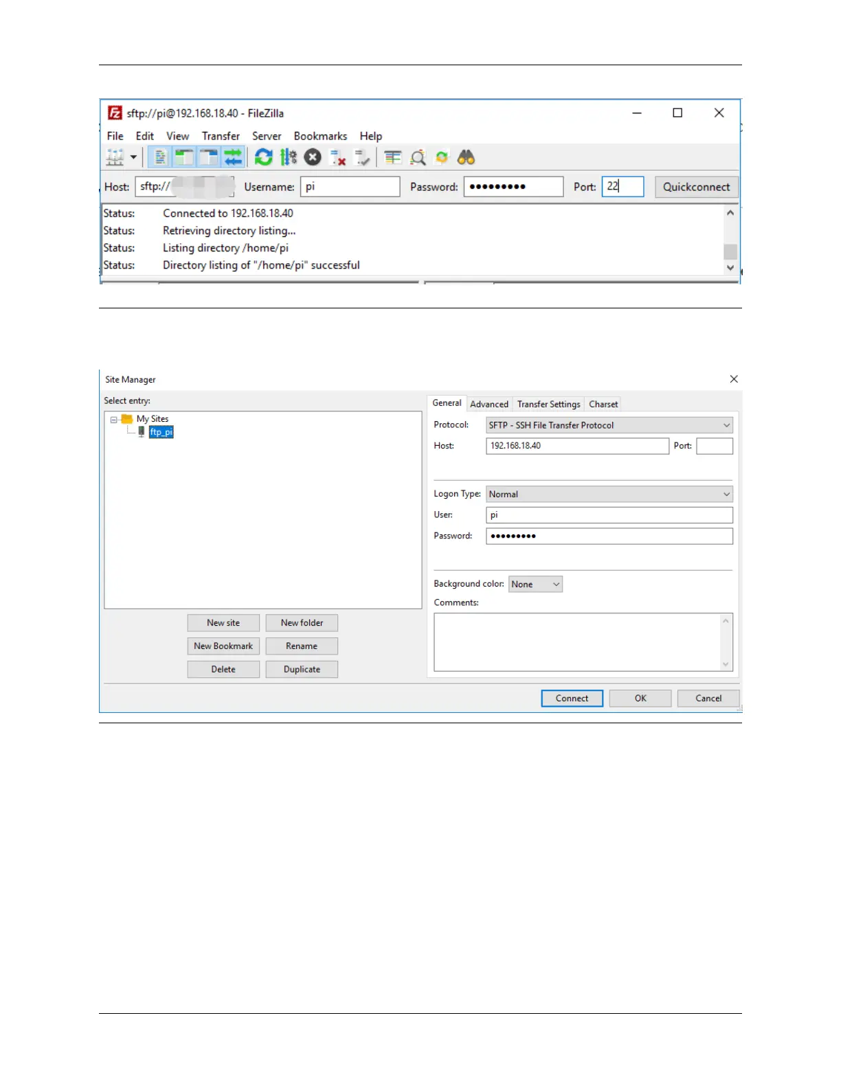 OK. Next time you will be able to connect by selecting the previously saved site inside File -> Site Manager.