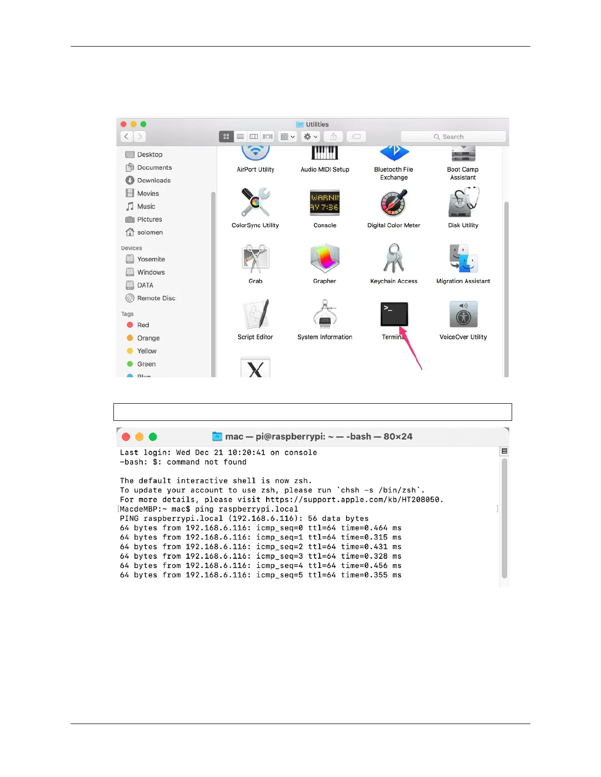 2. Check if your Raspberry Pi is on the same network by type in ping <hostname>.local.