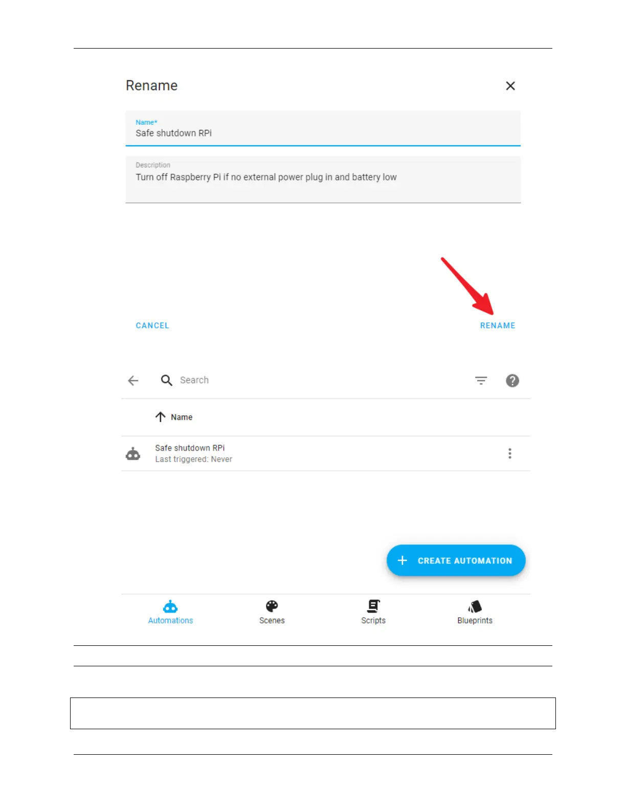 7. Go back one level. Now you should see the newly set automation.