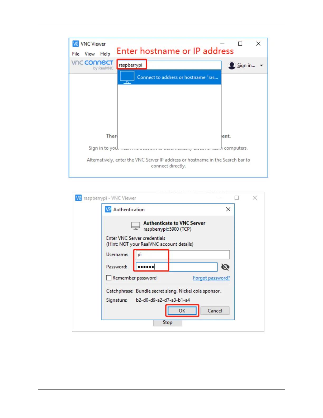 3. When prompted, enter your Raspberry Pi’s username and password, then click OK.
