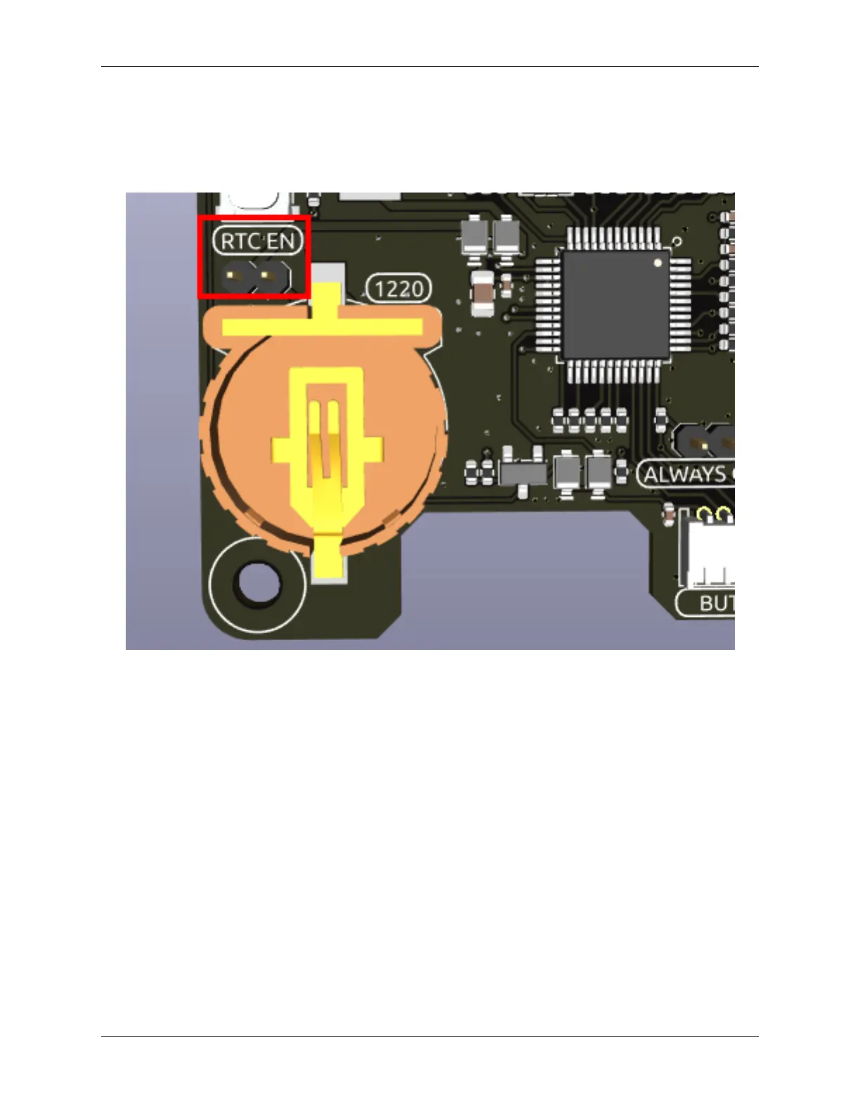 1220 battery holder, and connect the jumper cap (RTCEN) on the battery holder (by default, it is connected) to use